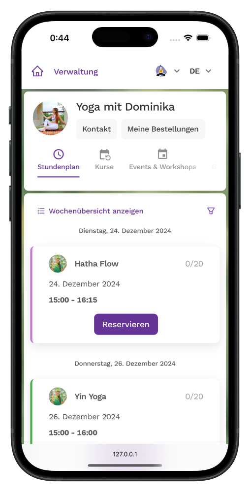 De meeste klanten boeken een les via hun telefoon. Als je boekingssysteem dat niet makkelijk maakt, stappen ze stilletjes over naar de concurrent.