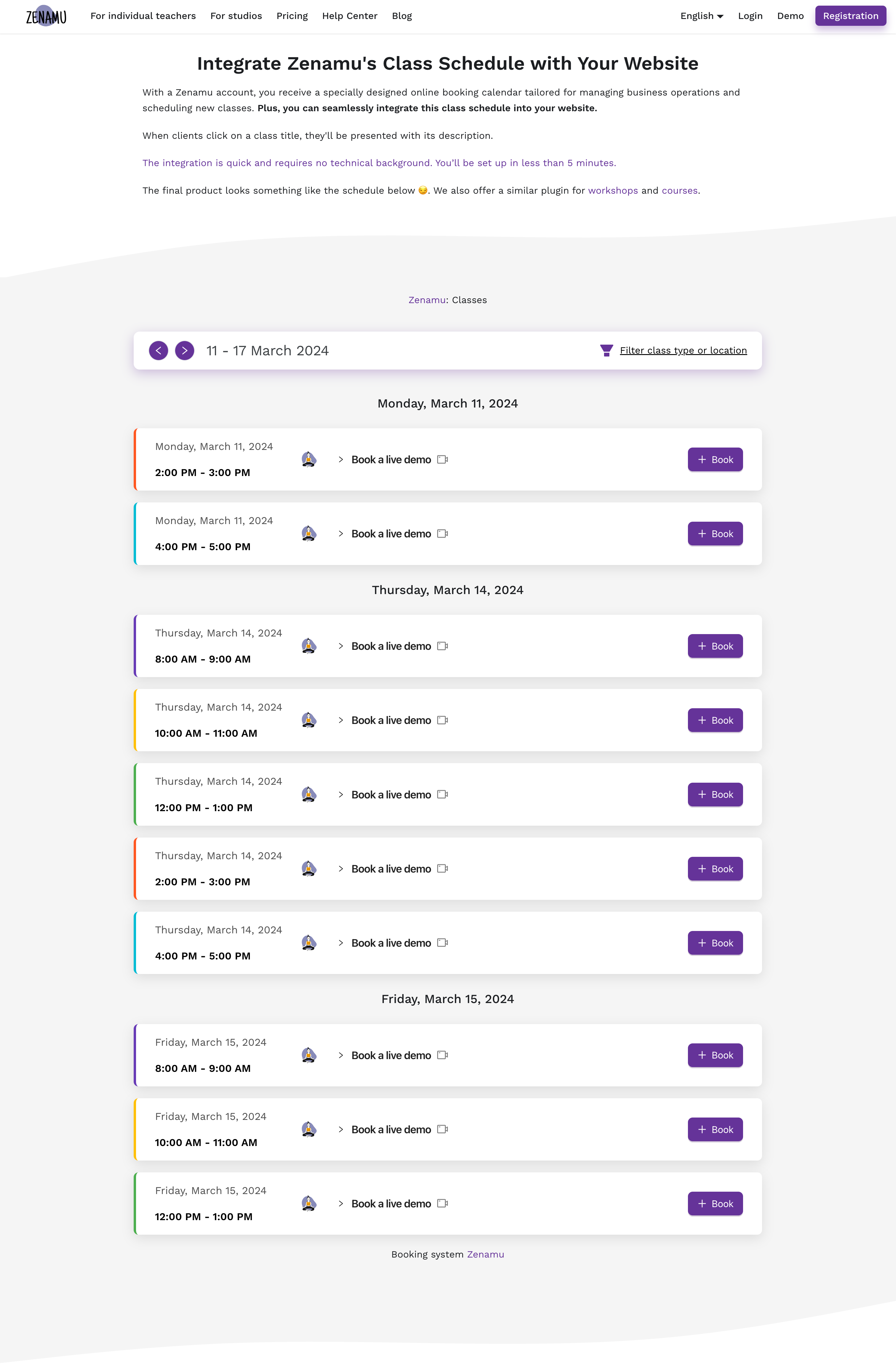 Displaying sessions for the upcoming 30 days works great for a handful of classes each month. However, in our quest to continuously improve Zenamu and make it even more user-friendly, we're excited to introduce a new way to present your schedule: WEEKLY.